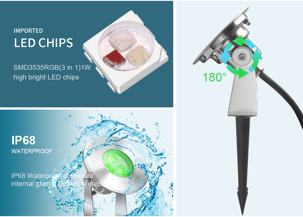 low voltage spike lights Adopt high-brightness imported chip, 316L stainless steel material, the irradiation angle can be adjusted life