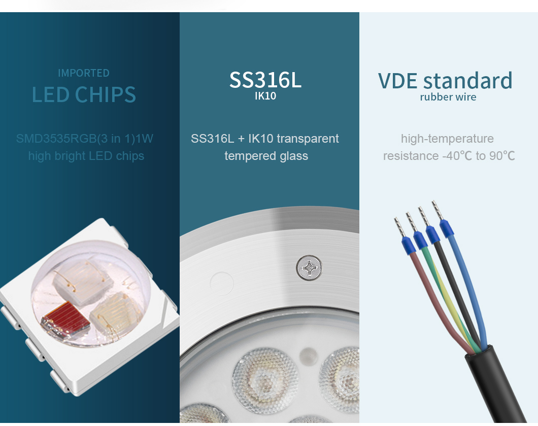 1. SS316L material,lamp body thickness:0.8mm,surface ring thickness:2.5 mm
