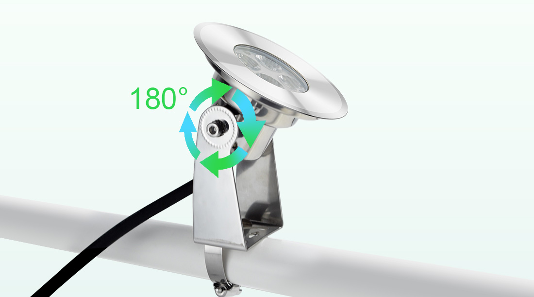 It can be widely used in garden pools, square pools, waterfalls, outdoor underwater, ponds, fountains, etc. All the underwater pool lights are passed various strict long-term tests to ensure qualification. It's also passed the temperature rising test, and built in over-temperature protection(it will automatically shut off when the interior temperature is more than 80℃ and can be re-worked when the temperature is cooled to 50℃). Making sure the light working properly and a longer lifespan. Bracket fixation or hoop fixation is both OK. Click the pictures to get more information: