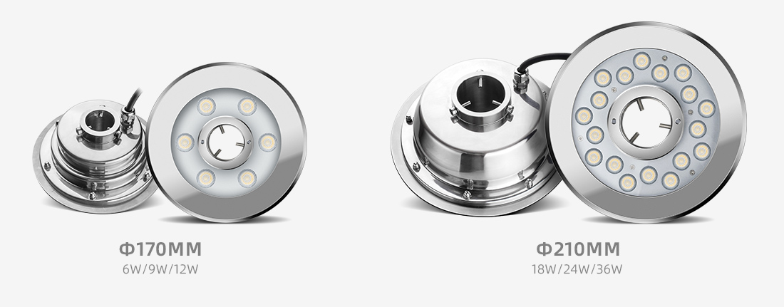 Heguang Lighting is a professional LED waterproof fountain light manufacturer and supplier in China. We have been engaged in the underwater industry for 19 years. Heguang's LED waterproof fountain lights have excellent lighting effects and bring you the best visual enjoyment. The Heguang waterproof fountain lights body is made of top-grade 316L stainless steel, the transparent tempered glass is 8.0mm thick, and it has passed the IK10 explosion-proof test. The maximum nozzle diameter is 50mm, and there are several powers from 6-36W to choose from. The voltage can be customized according to the customer's 12V or 24V.